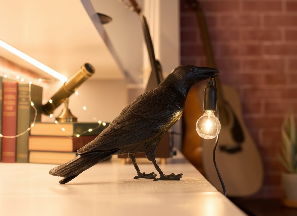 Inspired by a dark raven, this sculptural lamp doubles as decor and lighting. Warm light glows from the bulb, infusing desks or bedside tables with a mysterious yet playful artistic vibe—perfect as both a light source and a bold desktop accent.